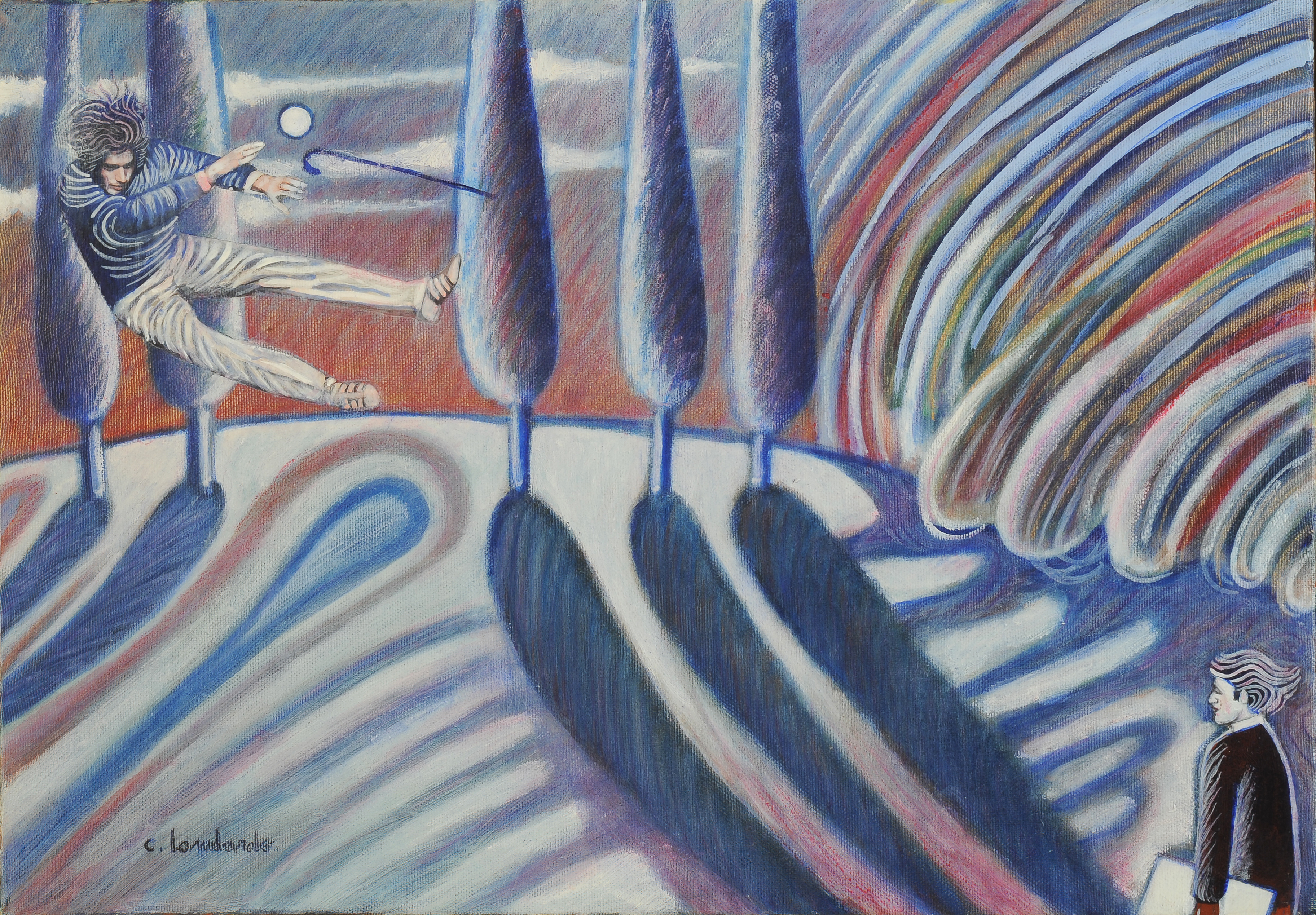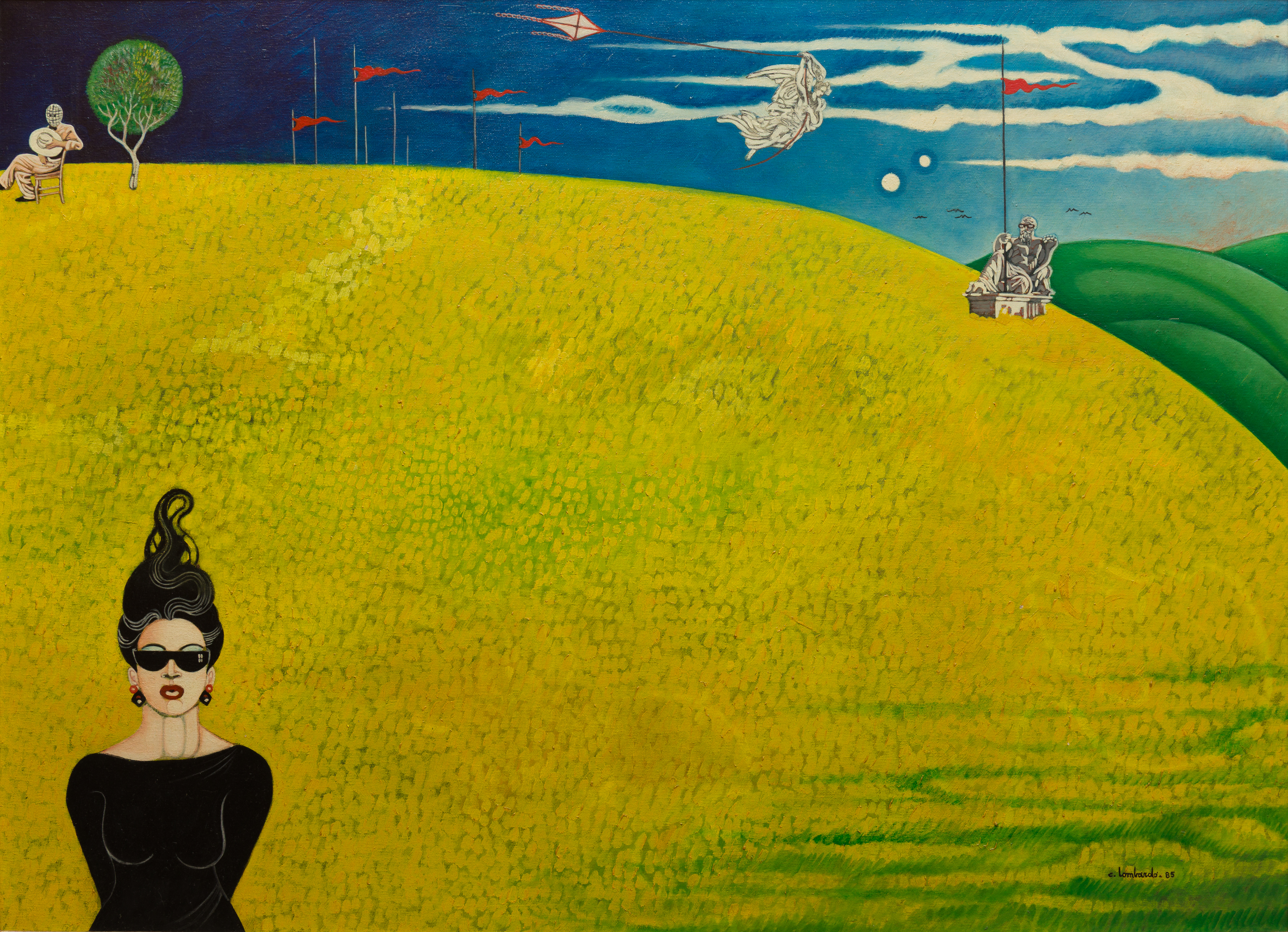 — Fabrizia FabbroniCarmelo Lombardo non è da iscriversi con certezza ad una qualsiasi corrente artistica contemporanea, anche perché uno dei suoi maggiori meriti è senza dubbio quello di sdoganare i sistemi e di dominare le mode. Tuttavia se non fosse per la sontuosità dei colori, per le definizioni e le connotazioni da vetrate, potremmo per esempio accostarne il plasticismo a quello vigoroso e sensuale di Tamara Lempicka.